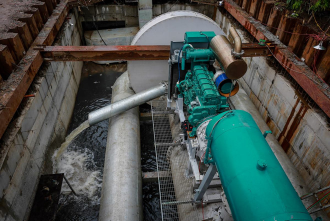 Theo ghi nhận, sau 4 ngày dừng hoạt động, Tập đoàn Quang Trung đã cho lắp thêm bơm trục đứng để phục vụ bơm thoát nước khi lượng nước trên mặt đường chưa lớn. Nhà đầu tư cũng hoàn thiện các hạng mục như chân máy phải cân chỉnh, hệ thống giảm giật, chống rung, giảm nóng để hệ thống máy bơm hoạt động tốt hơn.