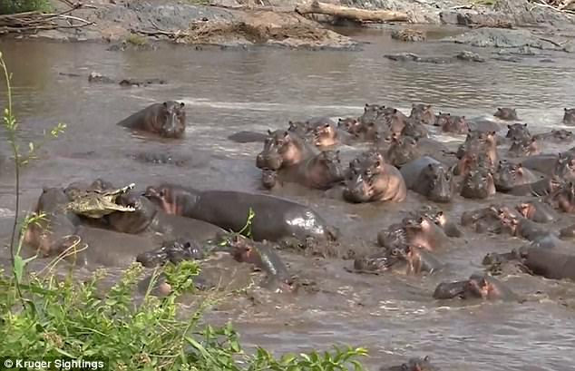 Theo tờ Daily Mail, con cá sấu bị trừng phạt vì dám cả gan tấn công hai con hà mã con. Ngay khi phát hiện thấy dấu hiệu xấu, bầy hà mã đã lao vào giải cứu 2 con non. Harish Kumar, tác giả đoạn video, nói rằng dù bị tấn công rất dữ dội nhưng cá sấu vẫn toàn mạng và thoát thân an toàn.