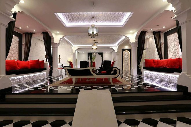 Những vòm trần và các bức tường được trang trí các hình học phức tạp, mô phỏng theo kiến trúc Mogon và kiểu chữ viết cổ rất đẹp và bóng bẩy của người Ấn Độ…