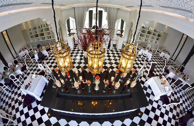 Nhà hàng Le Taj thiết kế theo kiến trúc Pháp với những chi tiết nghệ thuật và nội thất phủ nhung cao cấp. Le Taj có những món ăn được phủ vàng lá 24K và hơn 150 loại rượu vang.