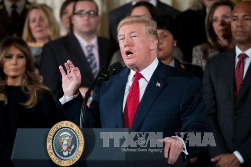 Tổng thống Mỹ Donald Trump phát biểu tại thủ đô Washington ngày 26/10. Ảnh: THX/TTXVN