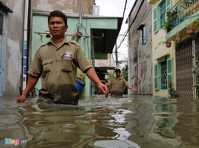 Áp thấp nhiệt đới "kép" cùng mực nước triều đang lên khiến TP.HCM đứng trước nguy cơ ngập nặng nếu bão đổ bộ. Ảnh: Lê Trai.
