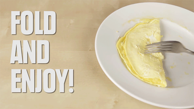 - Mở lò và lấy đĩa ra, khuấy mặt trứng dàn phẳng tiếp rồi quay trong lò thêm 60 giây nữa.