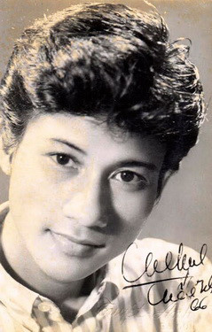 Ca sĩ Chế Linh hồi trẻ, bảnh trai với mái tóc dày, đôi môi tươi và đôi mắt đẹp linh hoạt.