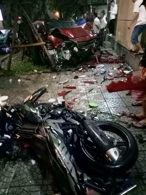Khi đến gần đoạn ngã tư đường Lý Thường Kiệt giao với đường Đống Đa thì bất ngờ tông chiếc xe máy SH mang BKS: 75F1 - 590.24 văng xa hàng chục mét và mất lái tiếp tục va quệt với đuôi một chiếc xe khách đang đậu trên vỉa hè rồi lao qua đường Đống Đa đâm thẳng vào quán nhậu.