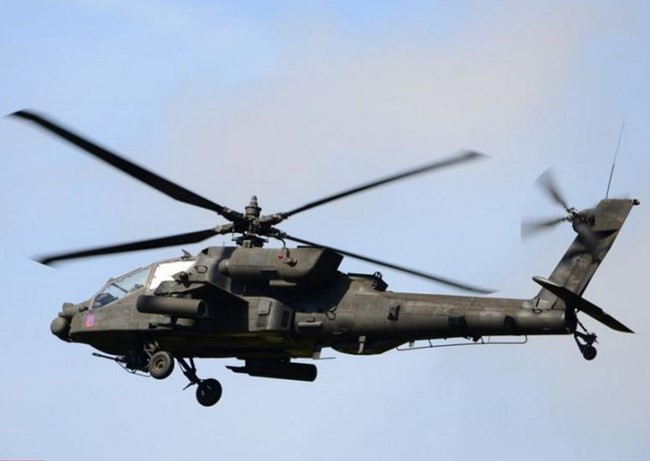 Máy bay trực thăng vũ trang AH-64 Apache thuộc lữ đoàn chiến đấu đường không 12, Lục quân Mỹ tiến hành huấn luyện bay chiến đấu. Ảnh: Cankao.