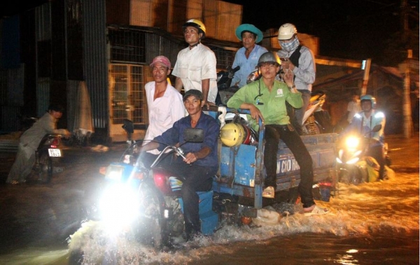Chiều hôm qua 6/11, triều cường tại Sài Gòn đạt đỉnh ở mức 1,9m. Người dân mới khổ sở àm sao. Đường sá ngập nặng đúng giờ tan tầm, dân Sài Gòn phải thuê xe ba gác máy về nhà với giá 50.000 đồng/lượt.