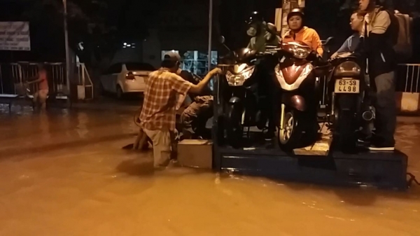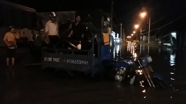 Theo ghi nhận của PV, triều cường bắt đầu dâng từ 16h30 đến khoảng 21h mới rút khiến người dân phải lội nước về nhà. Các phương tiện đi lại chết máy nằm la liệt.