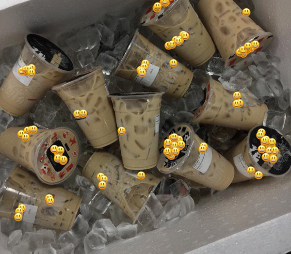 Anh chàng còn tự mình mang đến 4 thùng chất đầy trà sữa.