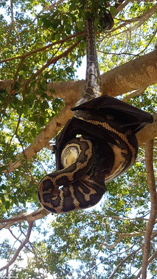 Trong một đoạn phim được quay bởi nhân viên bắt trăn Tony Morrison ở Úc, một con trăn siết chặt một con dơi khổng lồ trong khi đang treo ngược cành cây.