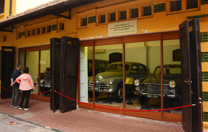 Tại khu di tích còn trưng bày những chiếc xe ôtô đã dùng phục vụ Chủ tịch Hồ Chí Minh trong thời gian Người sống và làm việc ở khu Phủ Chủ tịch. Đây là những chiếc xe do Chính phủ, Đảng Cộng sản Liên Xô và đồng bào Việt kiều ở Tân Đảo (Vanuatu) tặng Chủ tịch.