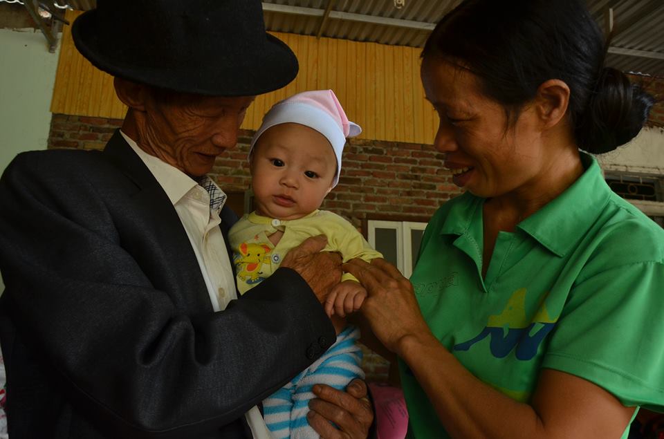 Ông Nhâm hạnh phúc bên người con gái và đứa cháu ngoại. Ảnh: Đình Việt