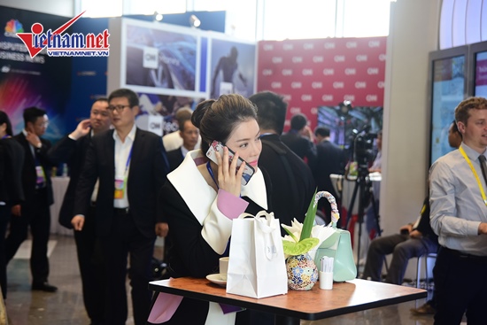 Dù sức khỏe yếu, Lý Nhã Kỳ vẫn có mặt tại Cung hội nghị Ariyana, Đà Nẵng tham dự APEC 2017 và theo dõi bài phát biểu của Tổng thống Mỹ Donald Trump.