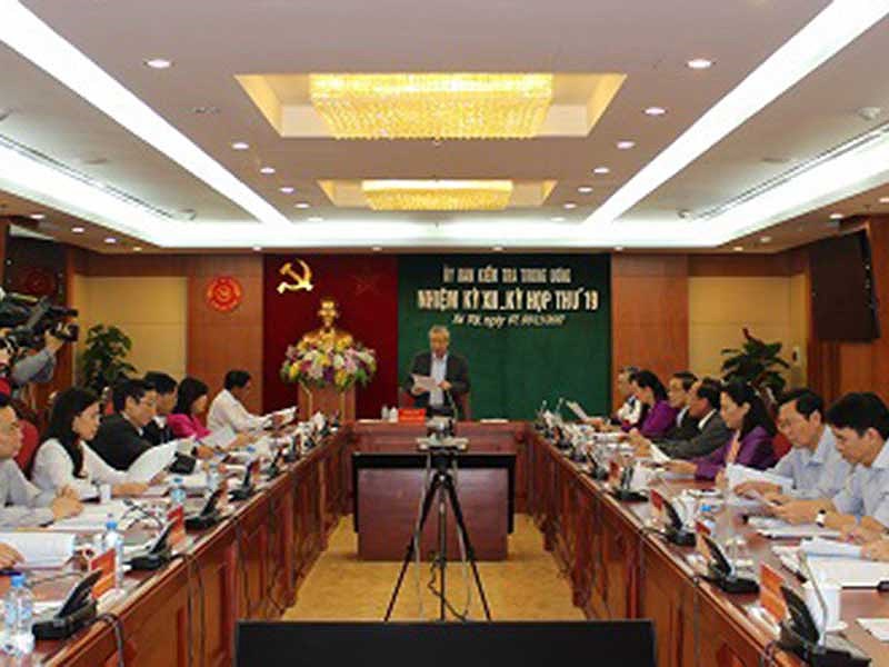 Ông Trần Quốc Vượng, Ủy viên Bộ Chính trị, Bí thư Trung ương Đảng, Chủ nhiệm Ủy ban Kiểm tra Trung ương, chủ tŕ kỳ họp thứ 19. Ảnh: Web UBKTTƯ