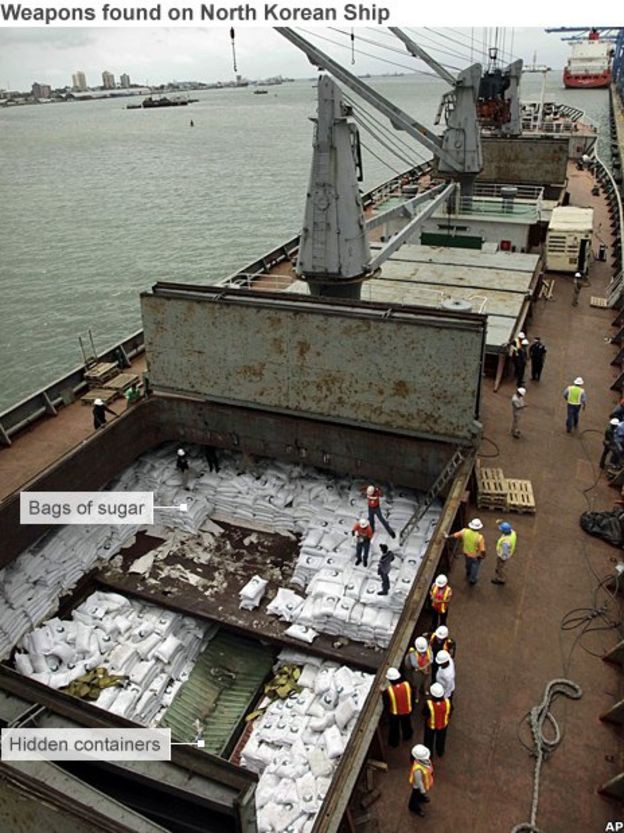 Một tàu Triều Tiên chở vũ khí cũ không khai báo của Cuba bị Panama bắt giữ năm 2013 (Ảnh: AP)