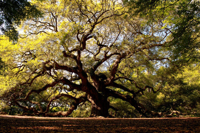Đây là cây sồi cổ thụ, nó có sức sống mãnh liệt mặc dù đã 450 năm tuổi. Nó được coi là biểu tượng thiên nhiên ở bang South Carolina, Mỹ. Mặc dù trải qua phong ba bão táp, cây sồi “thiên thần” vẫn tồn tại bất chấp tất cả.