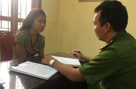 Lê Hà Vi tại cơ quan công an, sau khi vụ án xảy ra.