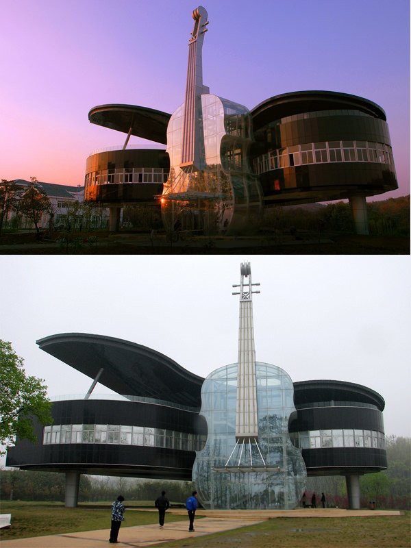Tọa lạc tại Hoài Nam, tỉnh An Huy, tòa nhà hình nhạc cụ cỡ lớn này được các sinh viên kiến trúc trường đại học kỹ thuật Hợp Phì lên ý tưởng xây dựng vào năm 2007. Các nhà quy hoạch thành phố cho biết căn nhà sẽ được sử dụng như một phòng trưng bày. Đàn vĩ cầm bằng kính trong suốt là cầu thang còn đàn dương cầm đằng sau chính là phần chính của tòa nhà.