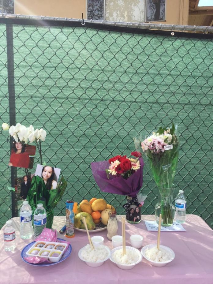 Nơi viếng ba nạn nhân gốc Việt, cũng là ba mẹ con, qua đời trong vụ cháy nhà ở San Jose vào sáng Thứ Bảy, 18 Tháng 11, 2017 (Hình: Phong Lê cung cấp)