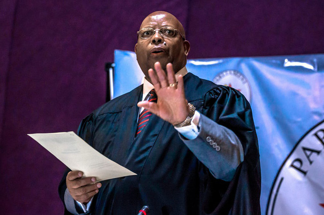 Chủ tịch Quốc hội Zimbabwe Jacod Mudenda hôm qua đã thông báo về quyết định từ chức của Tổng thống Mugabe và Quốc hội đã chấm dứt quy trình luận tội nhà lãnh đạo này. (Ảnh: AFP)
