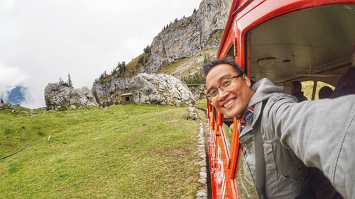 Việt trên tàu leo núi ở Thụy Sĩ