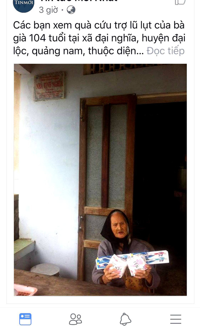 Ngày 28/11, trên mạng xã hội đã lan truyền với tốc độ chóng mặt hình ảnh một cụ bà cầm trên tay phần “quà hỗ trợ” là 2 bịch băng vệ sinh và 4 bàn chải đánh răng ngồi trước nhà khiến dư luận bức xúc.