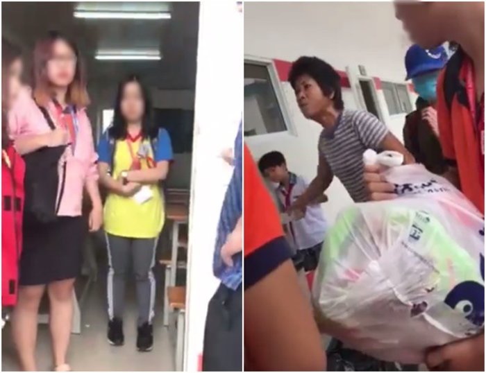 Sau khi bị một số sinh viên "vu oan" cho con trai mình, chị lao công đã tỏ ra vô cùng bức xúc. Để chứng minh con trai mình bị đổ oan, người phụ nữ này đã đổ hết giấy từ trong thùng rác trước cửa phòng vào túi nilon, sau đó giơ chiếc thùng rác ra trước mặt các sinh viên và nói, "Đó, bây giờ nước ngọt nguyên một cái thùng này. Toàn nước ngọt trong này đó mà sao lại nói chuyện như vậy hả. Con chị nó không có uống nước ngọt mà chị tức".