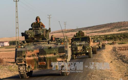 Binh sĩ và xe quân sự Thổ Nhĩ Kỳ tại Jarabulus (thị trấn biên giới giữa Syria và Thổ Nhĩ Kỳ) ngày 2/9/2016. Ảnh: AFP/TTXVN