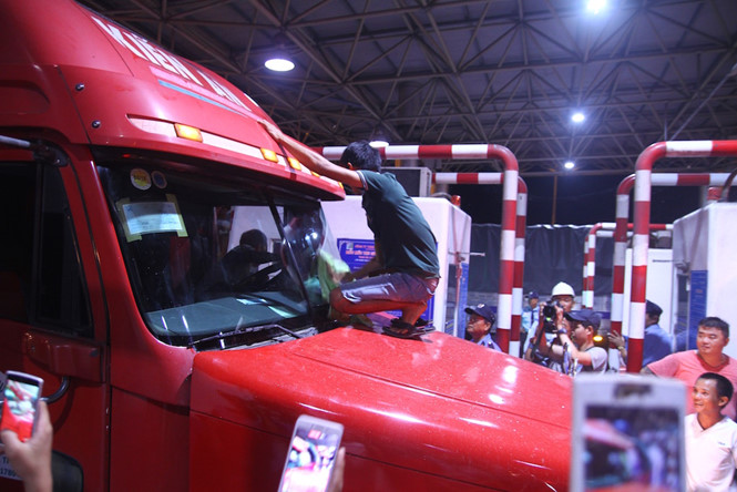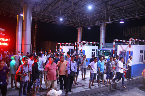 Lúc 18 giờ 30, nhân viên trạm thu phí tiến về phía cabin để tiếp tục công việc thu phí. Nhưng ít phút sau, cánh tài xế đồng loạt tiến về phía trạm dừng xe và phản đối.