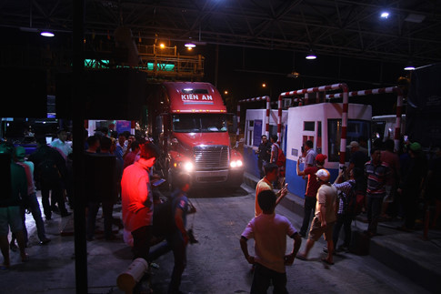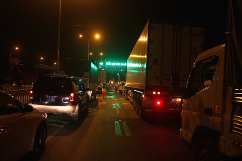 Đến tối, hàng loạt tài xế vẫn cứ kéo đến trạm thu phí để phản đối