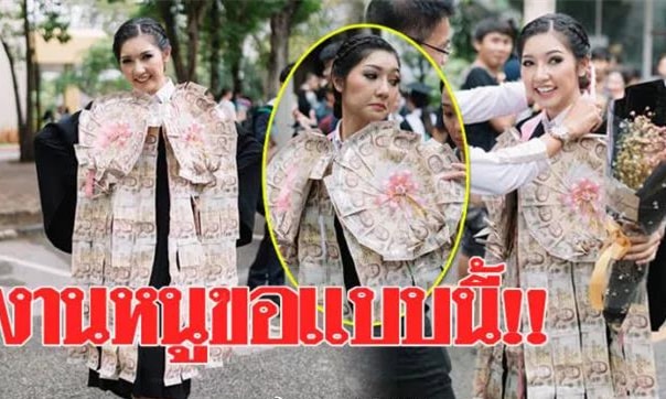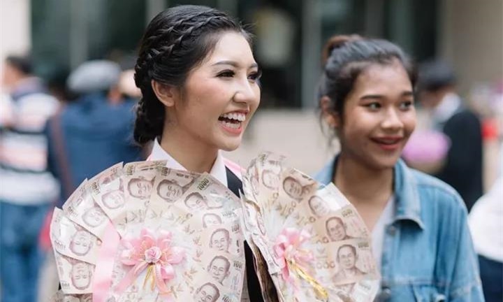 Hot girl Thái với bộ lễ phục tốt nghiệp ngập trong tiền gây xôn xao dư luận