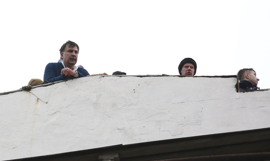 Ông Saakashvili trốn lên mái nhà. Ảnh: Reuters