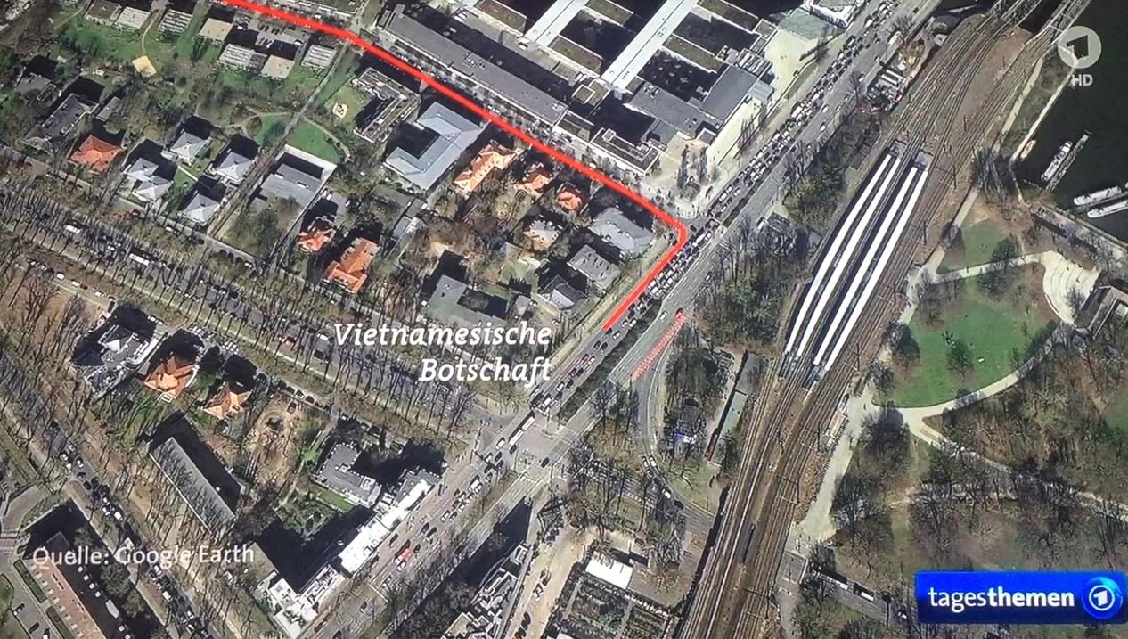 Đoạn đường đã chỉ rõ, sau khi bắt cóc, chiếc xe đã chạy vào Đại sứ quán Việt Nam ở Berlin trên đường Elsenstraße tại Berlin-Treptow và dừng ở đó 5 tiếng.