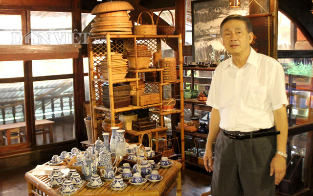Việt kiều Nhật, TS. Nguyễn Trí Dũng bên các hiện vật văn hóa được sưu tầm. Ảnh: Nguyên Vỹ
