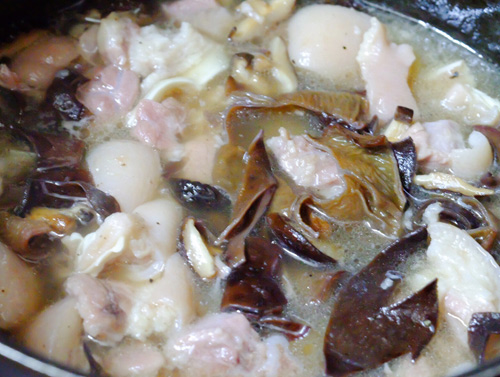 - Bước 5: Trút phần nấm hương, mộc nhĩ đã xào vào nồi thịt, vặn lửa to, đun sôi khoảng 5 phút nữa thì tắt bếp. Bạn rắc hạt tiêu vào nồi thịt sau đó đảo đều.