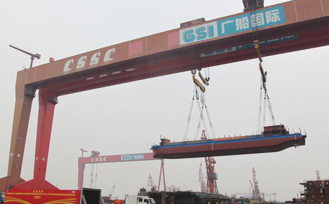 Tàu chở hàng đầu tiên trên thế giới chạy bằng điện được hạ thủy tại Trung Quốc hồi tháng 11. Ảnh: PEOPLE’S DAILY CHINA