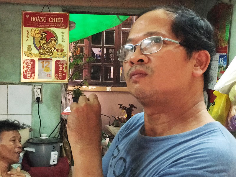 Đường vào nhà cặp vợ chồng này là một con hẻm nhỏ chỉ lọt 1 người đi. Căn nhà cấp 4 khá tềnh toàng, một bàn thờ nhỏ đã được lập với khói hương nghi ngút và hoa quả. Bên trong, những người thân của gia đình anh Văn buồn rầu ngồi cạnh nhau, họ thỉnh thoảng quệt nước mắt và thở dài.
