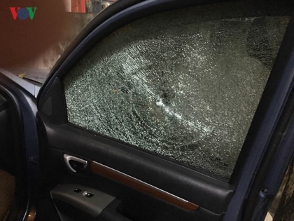 Tại hiện trường, chiếc xe ô tô của vợ anh Kiên nhãn hiệu Santafe, biển kiểm soát 14M 7778 đỗ trong sân nhà dính nhiều vết đạn trên thân và kính xe.