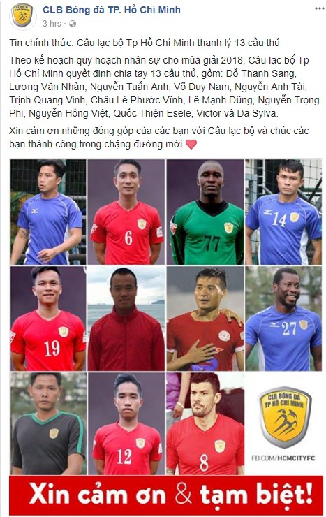 Như vậy, kể từ khi được bổ nhiệm nắm chức quyền Chủ tịch CLB TP.HCM, Công Vinh đã thanh lý tổng cộng 21 người, trong đó có cả HLV Alain Fiard. Đây có thể xem là cuộc thay máu chuẩn bị cho V.League 2018.