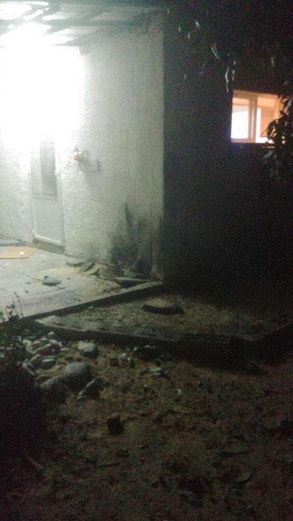 Một bức hình được đăng tải trên Twitter chụp lại ngôi nhà bị trúng tên lửa. Tường bên ngoài cháy xém và nhiều mảng bê tông bị nứt vỡ.