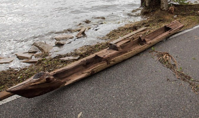 Một ngày sau khi bão đổ bộ, nhiếp ảnh gia Randy Lathrop đã nhìn thấy một cano cổ trên bãi biển. Cano làm từ gỗ tuyết tùng và được tin là có niên đại từ những năm 1600.