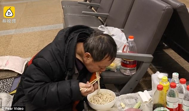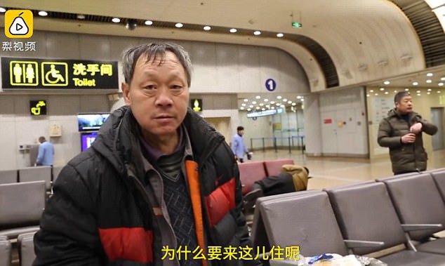 Ông Wei "tận hưởng" cuộc sống của một người vô gia cư tại Sân bay Quốc tế Bắc Kinh.