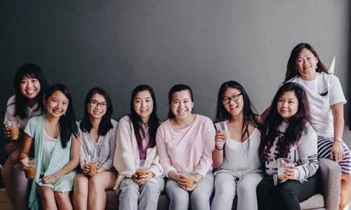 Lilian, ngoài cùng bên trái, cùng các bạn tham gia dự án Gạo nếp.