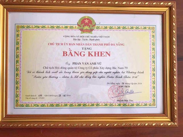 Với những chương trình thiện nguyện của ông Vũ "nhôm", chính quyền TP.Đà Nẵng rất ghi nhận và nhiều lần trao tặng giấy khen, bằng khen cho các công ty của ông Vũ "nhôm" và cá nhân ông Vũ "nhôm".