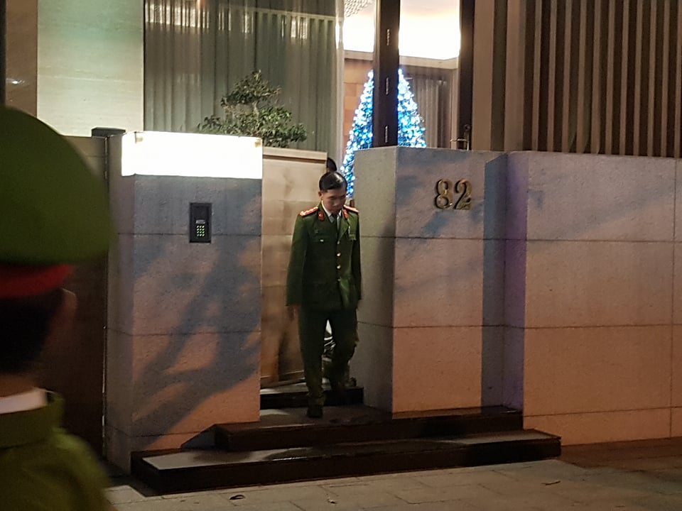Cán bộ điều tra đi ra từ nhà ông Vũ "nhôm" tối 21.12. Ảnh Đình Thiên