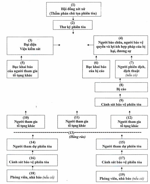 Mô hình phòng xét xử theo Thông tư 01/2017 của TAND Tối cao.