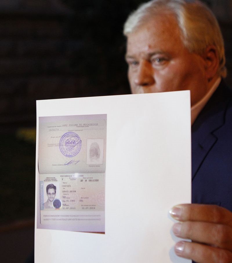 Luật sư Anatoly Kucherena trình văn bản cho thấy Nga đồng ý trao cho Snowden tư cách tị nạn hồi năm 2013. Ảnh: Reuters.