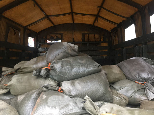 Rất nhiều đầu đạn được đơn vị công binh thu gom cho lên xe ô tô tải mang đi xử lý