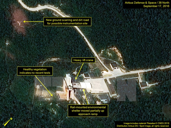 Theo trang mạng trên, những hình ảnh vệ tinh gần đây chụp tại bãi thử hạt nhân Punggye-ri cho thấy sự gia tăng đáng kể trong các hoạt động ở khu vực Cổng Tây trong suốt tháng 12/2017.