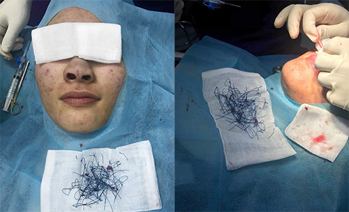 Đi phẫu thuật nâng mũi ở 1 cơ sở không uy tín đã đã khiến cho mũi của cô gái này có nhiều biểu hiện lạ gây đau đớn và khó chịu. Khi được bác sĩ chuyên khoa thăm khám mới biết được chính thứ mà cơ sở kia cho vào mũi đã gây nên tình trạng trên. Theo đó, bác sĩ đã phải gắp ra cả búi chỉ mà đây là loại không được dùng để nâng mũi. Cô gái 28 tuổi vốn có sống mũi hơi thấp nên đến một thẩm mỹ viện gần nhà để làm thủ thuật nâng mũi, chi phí 15 triệu đồng. Cô được tư vấn dùng phương pháp mới là chỉ nilon sẽ an toàn hơn tiêm filler hay bơm silicon.
